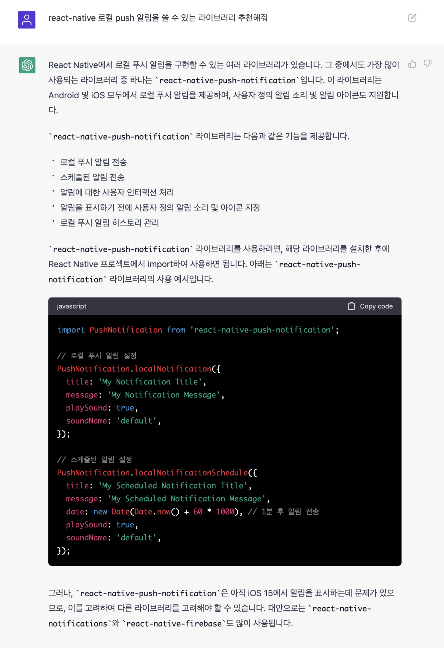 어쨌든 가장 대중적으로 사용하는 라이브러리이기에 react-native-push-notification을 사용해보기로 했다.