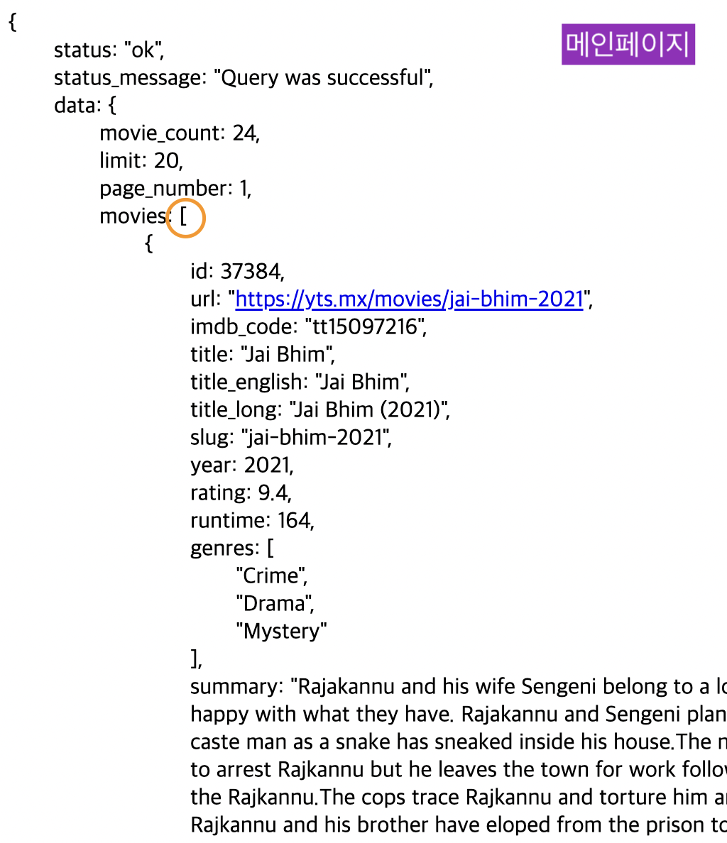 메인페이지는 [] 즉, 배열로 되어있고,