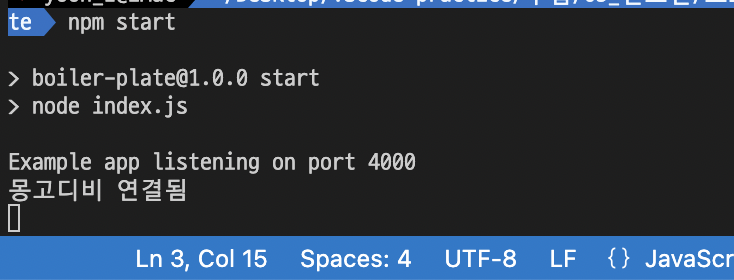 터미널에 npm run start를 치고 잘 연결이 되는지 확인한다.