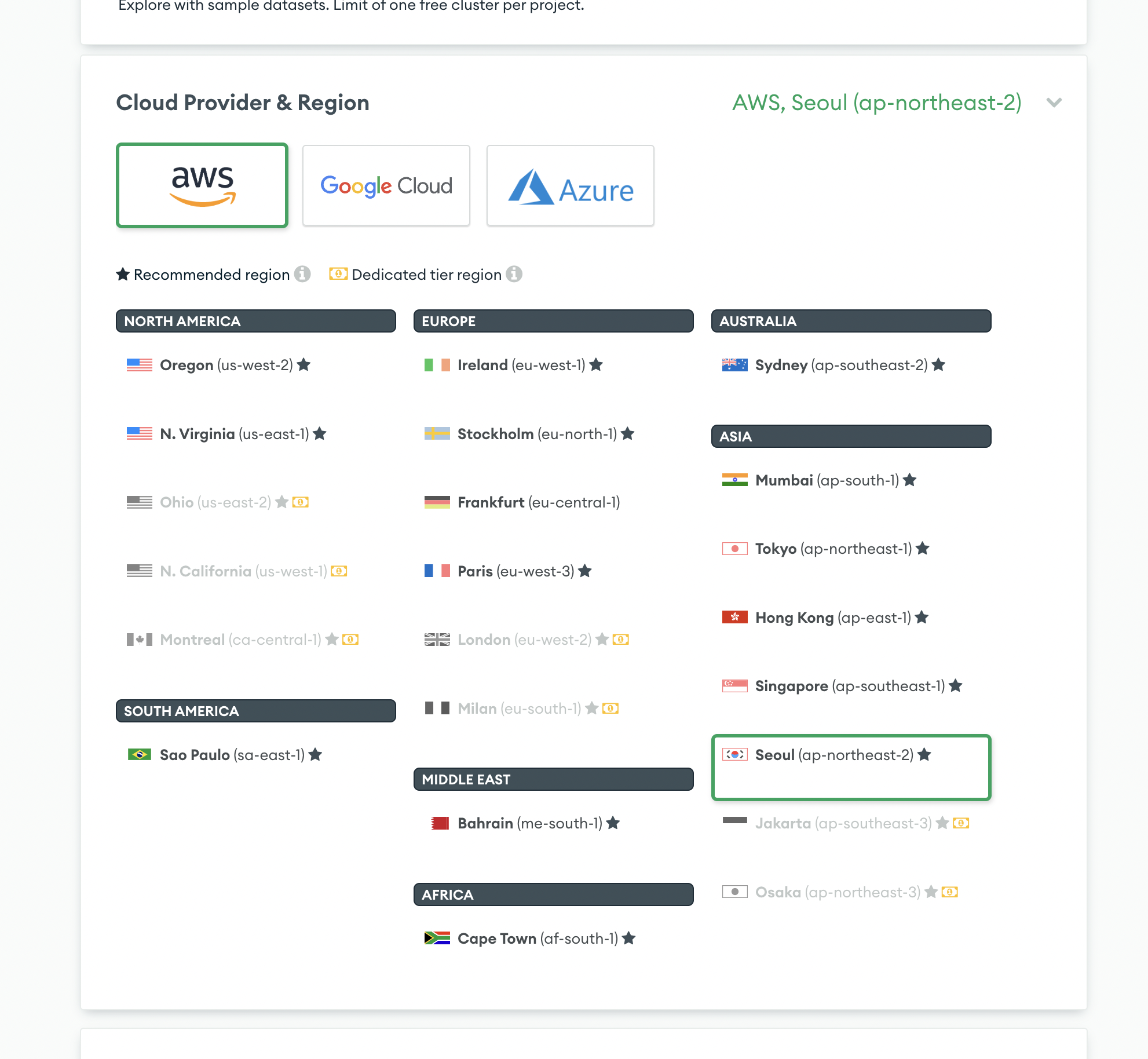 3. 기본값으로 클라우드는 aws와 지역은 서울로 되어있다.