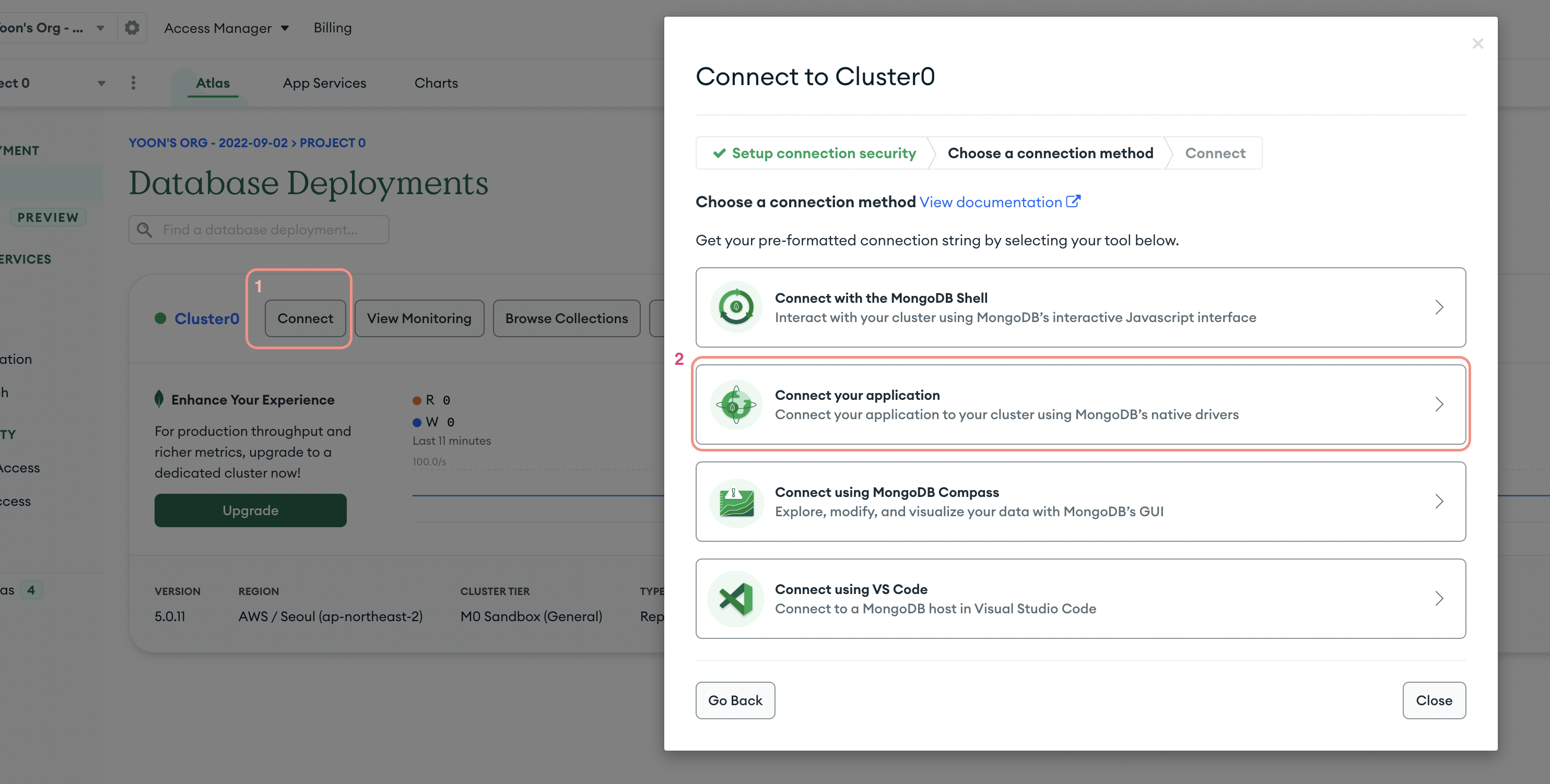 1.mongoDB사이트에 회원가입을 한다. 구글 연동도 되어서 구글아이디로 로그인을 했다.