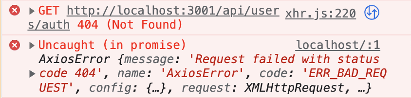 AxiosError {message: 'Request failed with status code 404', name: 'AxiosError', code: 'ERR_BAD_REQUEST', config: {…}, request: XMLHttpRequest, …}
