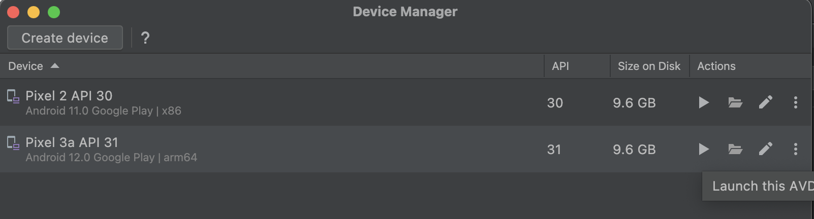Tools - Emulator로 들어간다.