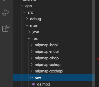 (1)안드로이드: android/app/src/main/res/raw (raw폴더는 새로 생성해준다.)